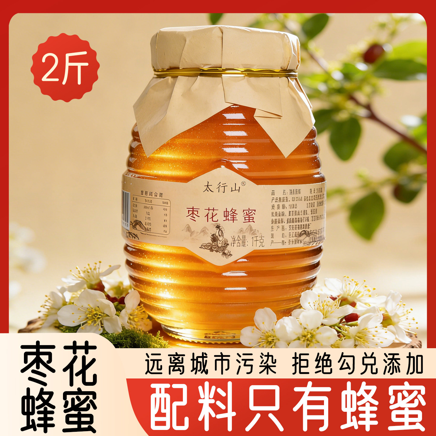 太行山枣花蜂蜜,纯正天然农家自产,玻璃瓶装更显品质!枣花香气浓郁,口感清润,适合家庭日常食用或送礼,健康好选择!下单链接: https://uland.taobao.com/item/edetail?id=RB85bYmfZtjym00rK0frRzUMt6-4V2A3ZgI9WGZVNwDUpz