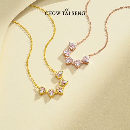 周大生桃花爱心项链纯银S925轻奢