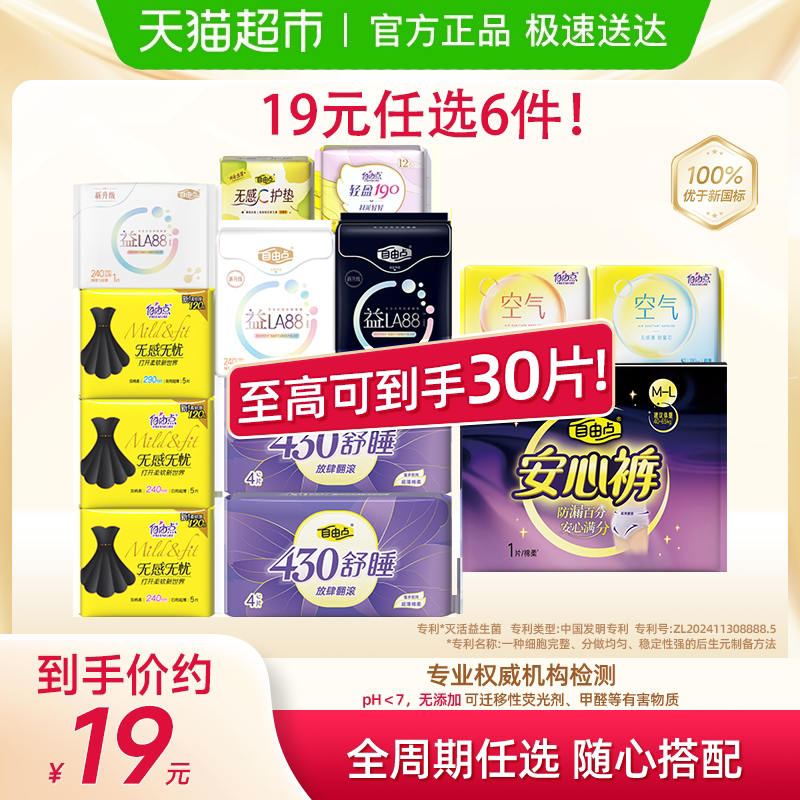 【全周期任选】自由点日夜用益生菌卫生巾组合,含卫生巾+安心裤+安睡裤,抑菌护感更安心,舒适防漏不侧漏,经期呵护更贴心!下单链接: https://uland.taobao.com/item/edetail?id=mkK6ADOHktJnxA6eZDhzjNtot3-KqGo5mwujGgw7XeAHn6