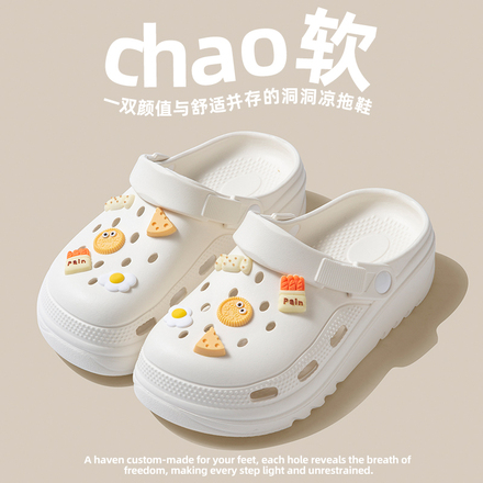 洞洞鞋!女士踩屎感增高包头外穿拖鞋