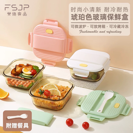 梵施家品微波炉加热玻璃饭盒770ML+赠送餐具