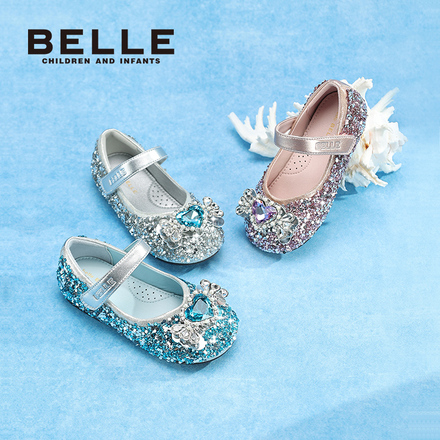 百丽童鞋女童水晶公主鞋儿童爱莎单鞋小皮鞋