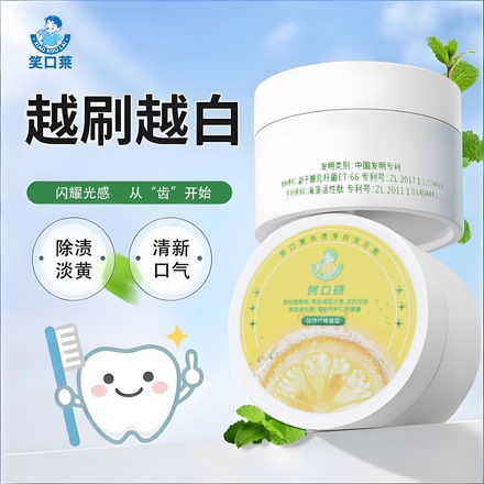 笑口莱洁牙粉,有效美白去黄、清除牙渍,清新口气,牙齿亮白如新!天然配方,温和不伤牙,呵护口腔健康!下单链接: https://uland.taobao.com/item/edetail?id=mPDyW80BfktJnnMeO6Kuzkmuot3-4V2A3ZgI9KJX9PenuO9