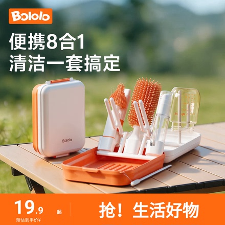 波咯咯便携奶瓶刷硅胶奶嘴刷8件套,含收纳盒+分装瓶,外出携带便捷,清洁更高效!下单链接: https://uland.taobao.com/item/edetail?id=gYzvD6Pi3t2ANo5YddhoQzSatr-v6PKX7dC8e0yZDBytdJ