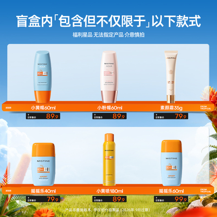 【惊喜盲盒】Mistine防晒霜+粉底液+气垫粉饼+唇釉组合,部分临期特价出售!拍1件仅需39.9元,多款美妆好物随机掉落,手慢无!下单链接: https://uland.taobao.com/item/edetail?id=xndbekQyhktqjxDYVZbhQNbiAt9-v6PKX7dCBvKer0zrFOg