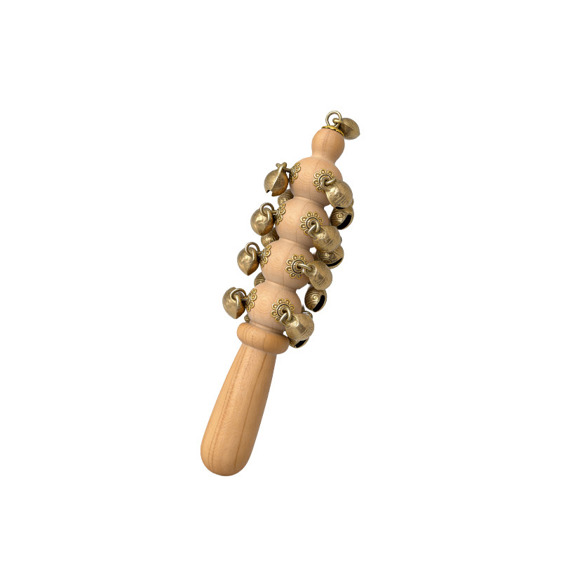 纯手工桃木羊皮拨浪鼓和黄铜哗啦棒铃铛