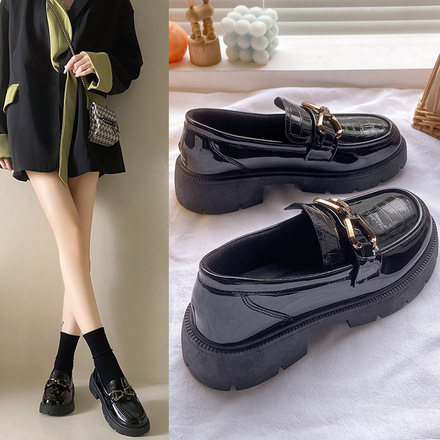 2026秋季新款亮面小皮鞋厚底系带复古学院风