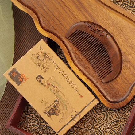 天然金丝檀木雕花梳子按摩梳