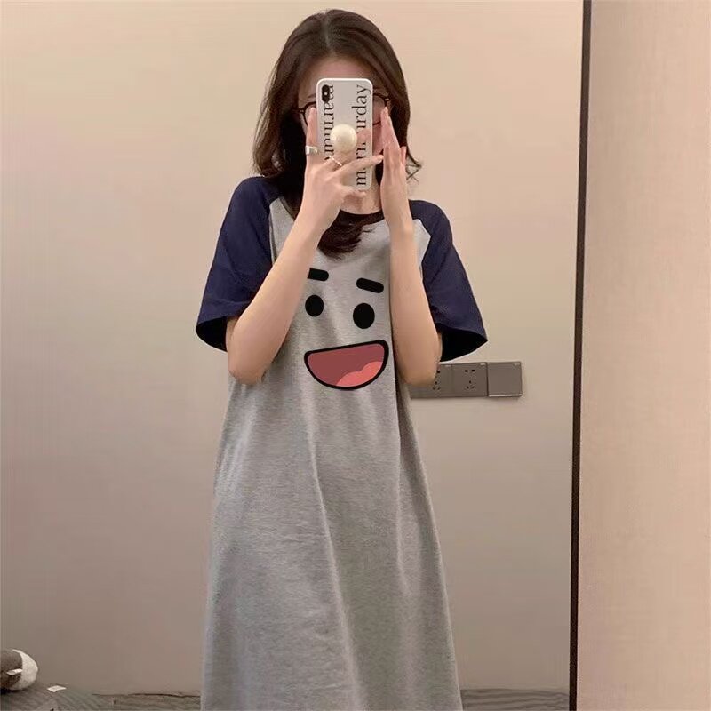 夏季韩版长裙睡裙宽松插肩长款短袖过膝