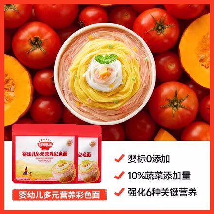【18.9两盒】,秋田满满宝宝面条挂面婴幼儿果蔬营养彩色面无添加盐儿童线面辅食下单链接: https://uland.taobao.com/item/edetail?id=p3xbZZRsxt63gevO0Yse20fptW-XqGwrmpu0nYgZBj2Sm