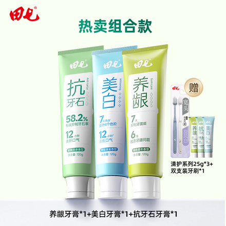 田七养龈抗牙石美白牙膏,草本植萃配方,温和养护牙龈。有效减少牙石沉积,深层清洁去渍,亮白牙齿不刺激。清新口气,呵护口腔健康,全家适用,刷牙更安心!下单链接: https://uland.taobao.com/item/edetail?id=jdOOoPQT0tJqv2j0gptBe0CJte-woMjqrKCMQVpqPMRTz