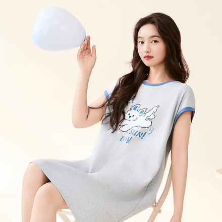 芬腾可安纯棉卡通带胸垫防凸点睡裙
